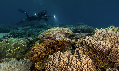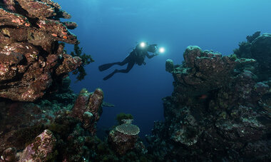 In the lagoon, at a site known as Les Roses, coral structures are home to countless fish. This is a dive for experienced divers (level II).