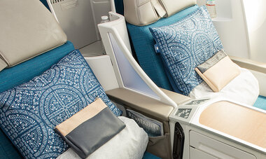 Our aircraft and their cabins reflect the unique beauty of Polynesia, which inspired our color palette: the warmth of the wood, the intensity of the ocean and lagoons, the brightness of the islands, and the freshness of the lush vegetation. Welcome aboard!